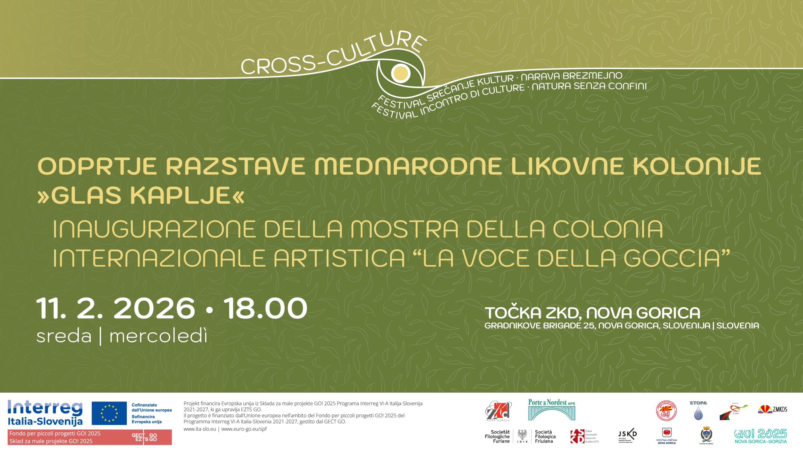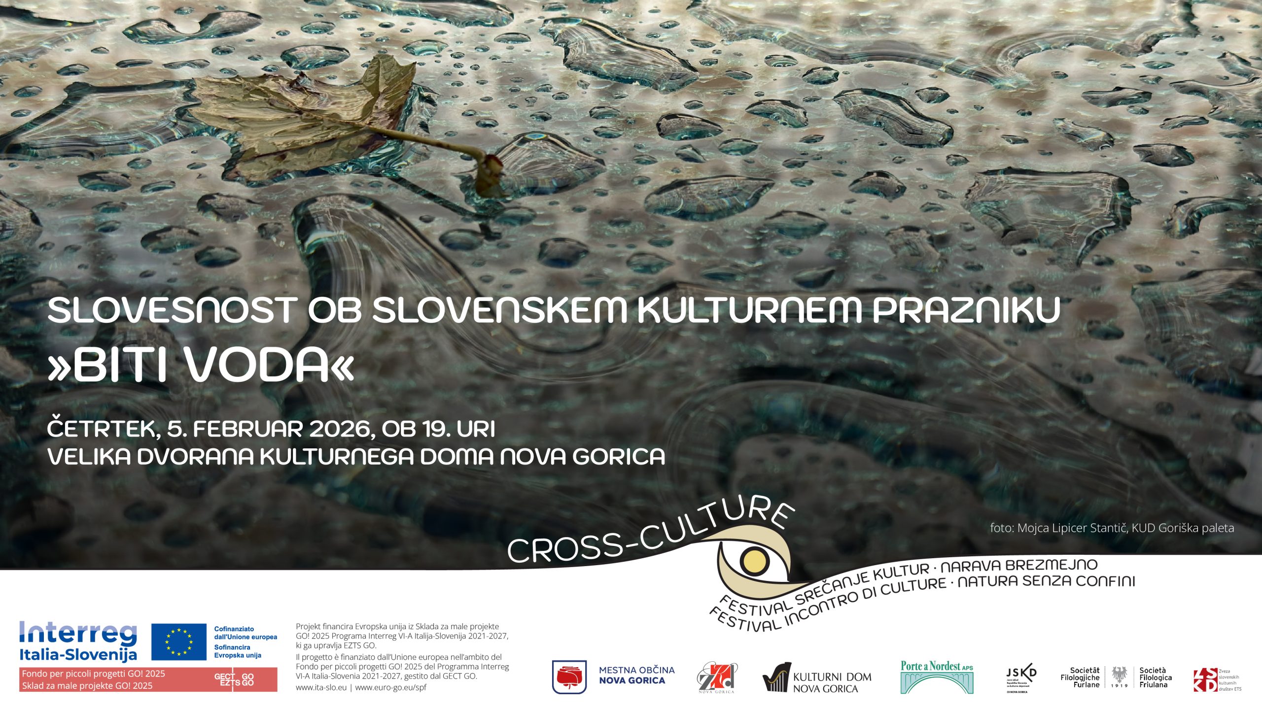 Kulturni dom Nova Gorica Bevkov trg 4,Nova Gorica,Slovenija»BITI VODA« | Slovesnost ob slovenskem kulturnem prazniku Mestna občina Nova Gorica v sodelovanju z Zvezo kulturnih društev (ZKD) Nova Gorica, Kulturnim domom Nova Gorica in Združenjem Porte a Nordest vabi na slovesnost ob slovenskem kulturnem prazniku. Ob 70-letnici Zveze kulturnih društev Nova Gorica in zaključku mednarodnega projekta CROSS-CULTURE bomo letošnji dan slovenske kulture počastili s prepletom različnih zvrsti ustvarjalnosti […]